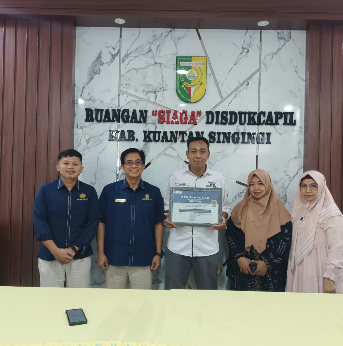 Teluk Kuantan, 05 Maret 2025 – Dinas Kependudukan dan Pencatatan Sipil (Dukcapil) Kab. Kuantan Singingi kembali menorehkan prestasi membanggakan dengan meraih penghargaan atas capaian 100% pelaporan Surat Pemberitahuan (SPT) Tahunan Pajak Penghasilan (PPh) Orang Pribadi bagi Aparatur Sipil Negara (ASN) Tahun 2024.