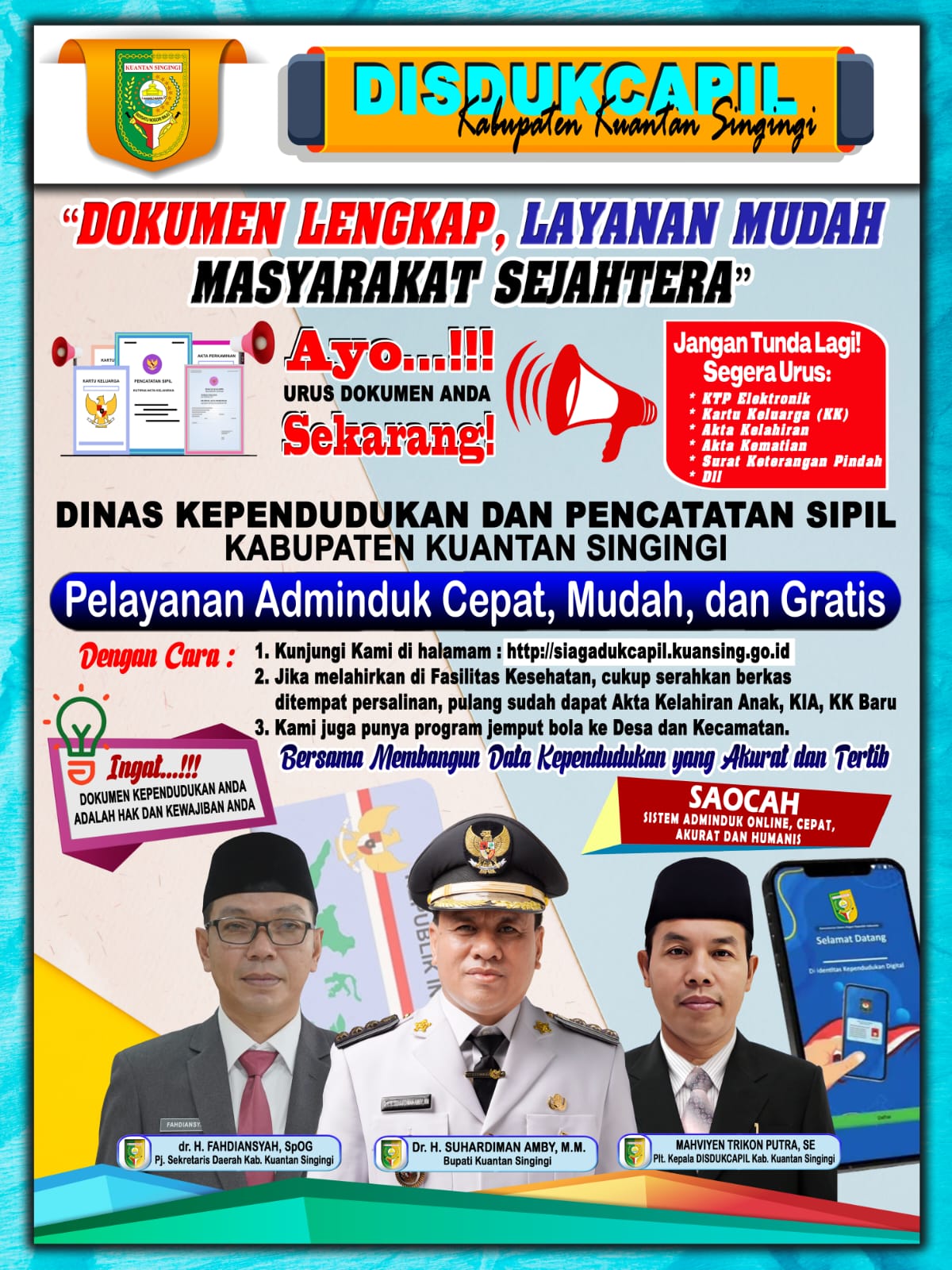 Dengan adanya sosialisasi ini, diharapkan masyarakat Kuantan Singingi semakin lebih tertib dalam administrasi kependudukan, sehingga berbagai layanan publik yang memerlukan dokumen tersebut dapat diakses dan tidak lagi menemuhi kendala dalam layanan public lainnya. Dukcapil Kabupaten Kuantan Singingi berkomitmen untuk terus meningkatkan kualitas pelayanan demi kesejahteraan masyarakat.