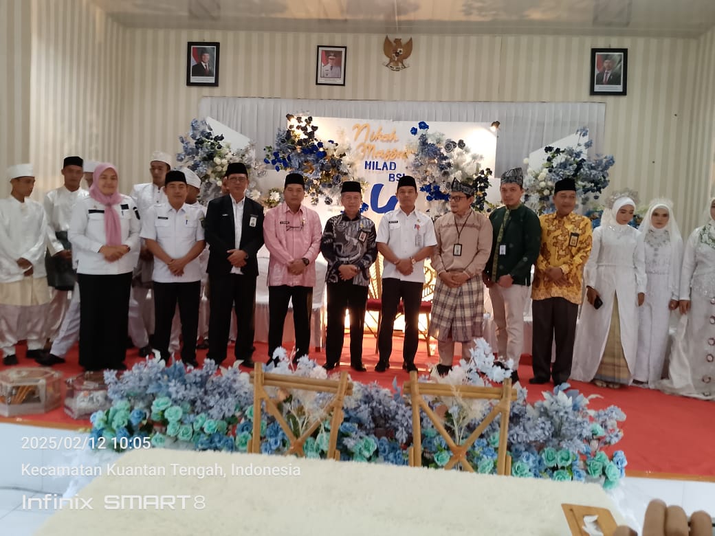 Teluk Kuantan 12 Pebruari 2025 – Dinas Kependudukan dan Pencatatan Sipil (Dukcapil) Kabupaten Kuantan Singingi hadir dalam acara Nikah Masal yang diselenggarakan oleh Bank Syariah Indonesia KCP Teluk Kuantan bekerja sama dengan KUA Kecamatan Kuantan Tengah dalam rangka peringatan ulang tahun ke-4 Bank Syariah Indonesia. Acara yang berlangsung di Aula Kantor Kementerian Agama Kuantan Singingi-Teluk Kuantan pada hari ini Rabu, 12 Pebruari 2025 ini merupakan bagian dari upaya Bank Syariah Indonesia mendukung legalitas pernikahan bagi pasangan yang kurang mampu serta memperkuat sinergi antara Pemerintah Daerah dan sektor perbankan dalam pelayanan kepada masyarakat.