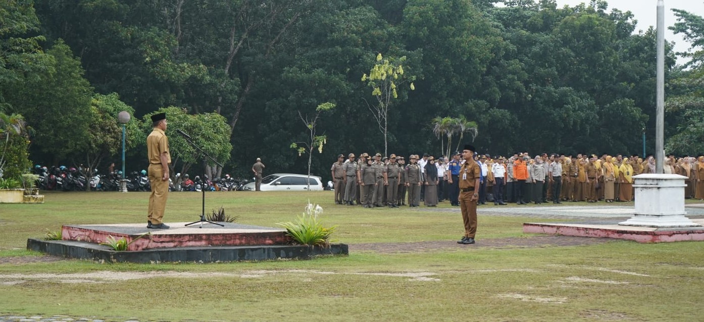 Teluk Kuantan 02 Pebruari 2026 apel– Dalam upaya memperkuat pemahaman aparatur sipil negara terhadap peran strategis administrasi kependudukan, Kepala Dinas Kependudukan dan Pencatatan Sipil Kabupaten Kuantan Singingi menegaskan bahwa administrasi kependudukan (Adminduk) merupakan fondasi utama dari seluruh urusan pemerintahan dan pelayanan publik. Hal tersebut disampaikan saat apel bersama Pemkab Kuantan Singingi sekaligus pembekalan Pegawai Pemerintah dengan Perjanjian Kerja (PPPK) yang dilaksanakan di Lapangan Apel Pemkab Kuantan Singingi, Senin 02 Pebruari 2026.
